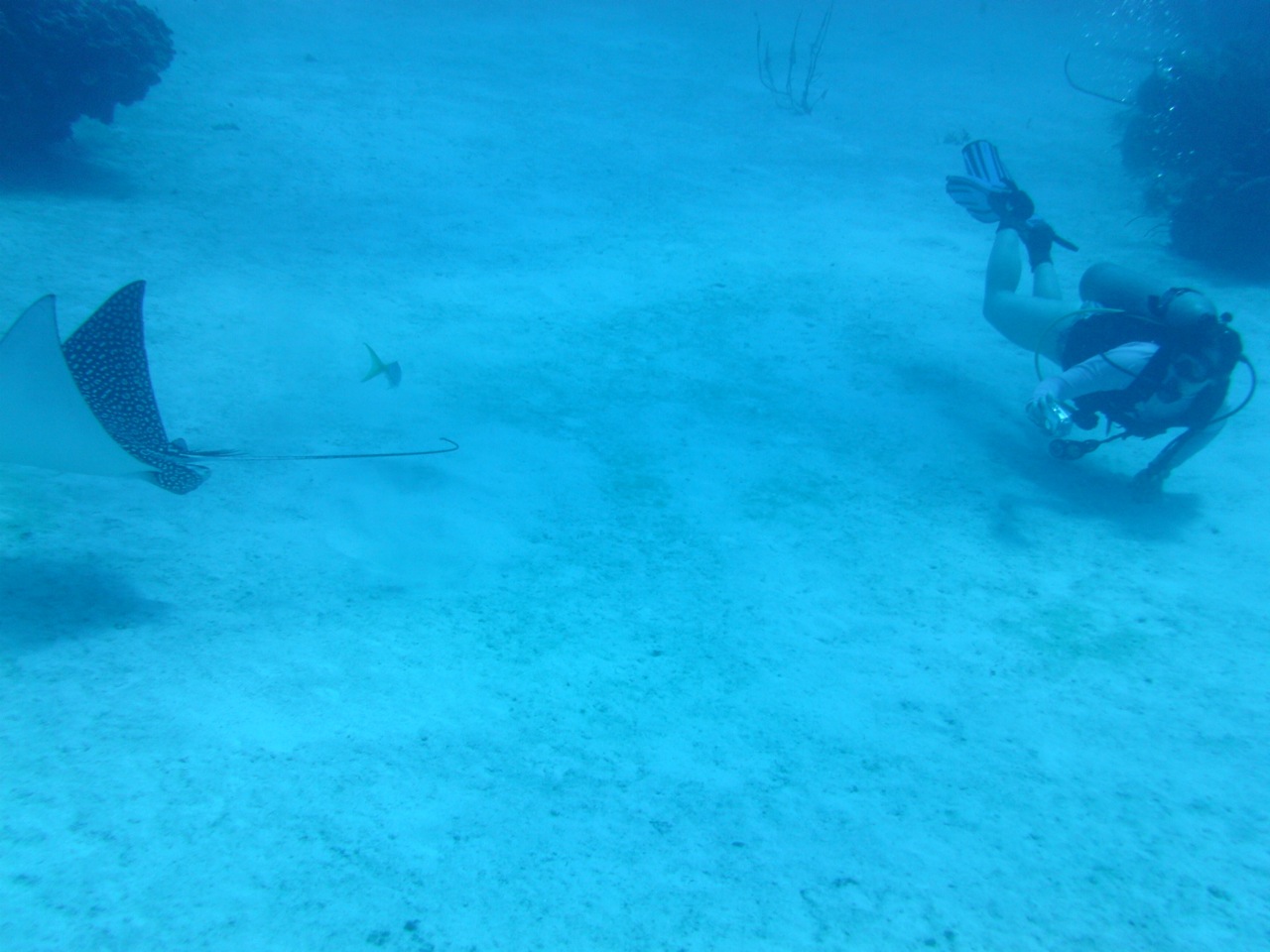 Well, this time I had a brand new camera housing so I was happily snapping away, figuring out lighting, angles, and how best not to spook the fish so they stay in frame for their glamour shot. Knowing that air was going to limit my dive, I was keeping a careful eye on my pressure gauge to make sure that I was well within safety limits, and wasn’t really paying as much attention to my dive time. Having shot about 500 photos (not kidding!) I checked both my air gauge and my dive computer. To my utter amazement, my dive time was at 58 minutes but I had WELL OVER A THIRD of my tank left. Surprised, and somewhat suspicious of the accuracy of my pressure gauge, I ended the dive and started my ascent to the safety stop. Back on the boat, I checked the pressure again, and the Divemaster on the boat even got another set of gauges to check that mine was reading accurately. It was. I knew my starting pressure as I always memorize it just in case – it had been a decent fill, but nothing absurdly high.